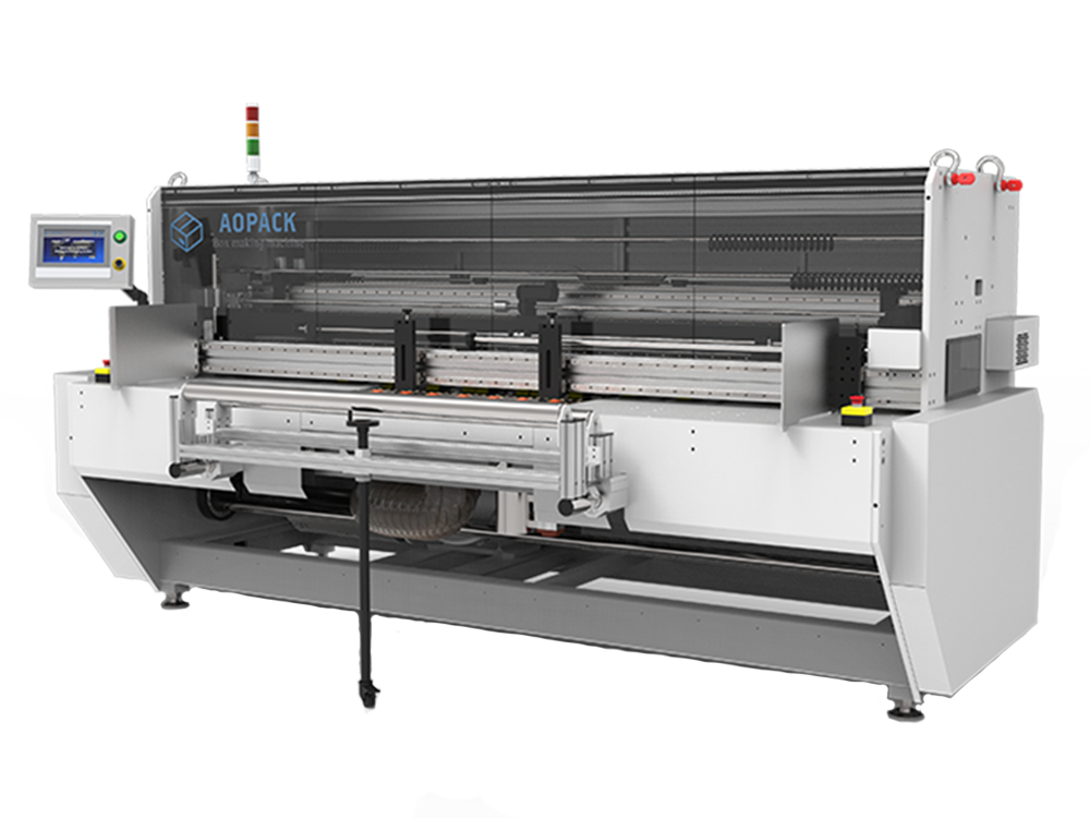 AOPACK BM2508-Plus is the most advanced and integrated box making machine giving the solutions to the short-run and serial production process of corrugated cardboard boxes.